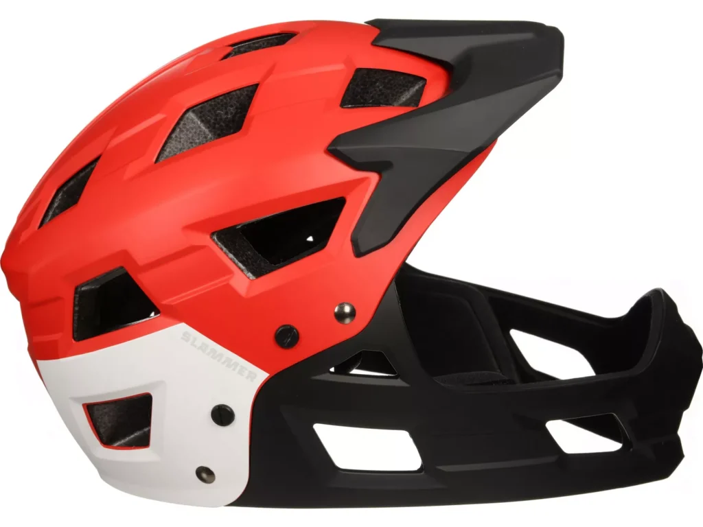 Bike Helmets – Kids Roots and Rubber Junior Slammer Full Face Helmet 54-58cm 461598 Was Now £35 Sale The Roots and Rubber Slammer Full Face Junior helmet is constructed from hard wearing ABS and shock-absorption EPS foam with 15 air vents and vented chin protection. It benefits from a large visor, adjustable fit system and inner comfort pads.Lightweight and strong EPS liner to help with shock and impact absorption15 vents to encourage airflow and keep your head cool Vented mouth protectionLarge visor provides increased protection from terrainEasy-to-use dial fit system adjusts to suit the individualProtection for cycling, BMX and skateboarding Warranty Information:The Roots and Rubber Junior Slammer Full Face Helmet comes with a 5 year quality guarantee.Disclaimer:Age is just a guide and it is important to measure the head. Quantity Enter an amount £ Add To Cart Buy Now